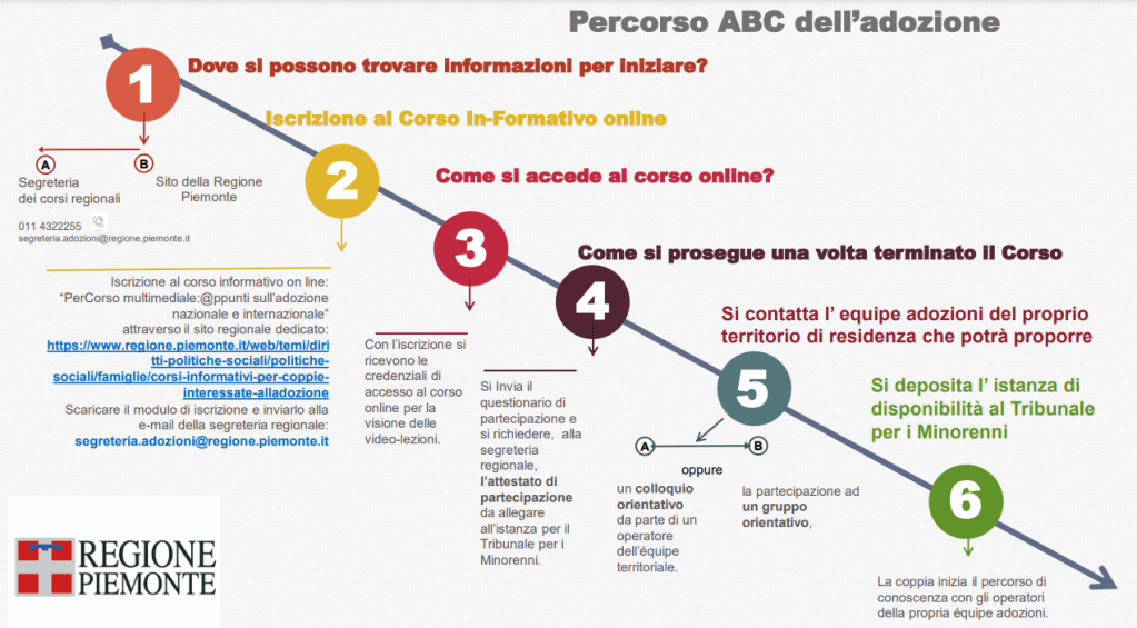 Per maggiori informazioni: https://www.regione.piemonte.it/web/temi/diritti-politiche-sociali/politiche-sociali/famiglie/corsi-informativi-per-coppie-interessate-alladozione